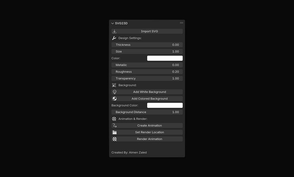 SVG23D is a lightweight Blender addon that makes it ridiculously easy to import SVG files, style them with custom materials, set up backgrounds, and export beautiful animations... all in just a few clicks.